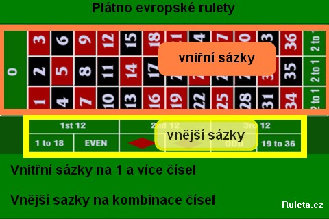 Stávky sa delia na základné dve kategórie - vonkajšie a vnútorné. A podľa toho je tiež rozdelené hracie plátno, viď obrázok.